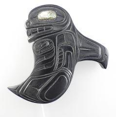 LOT 177 Haida Argillite "Killer Whale" Plaque signed Jabu Bell, 3 1/4"h (chipped). Estimate: $100 - $150 Sold For: $80 Auction Date: Tuesday, March 31 2026 at 4:00 PM