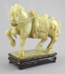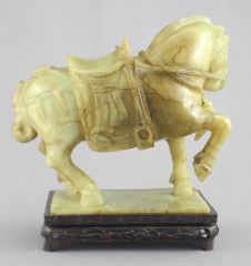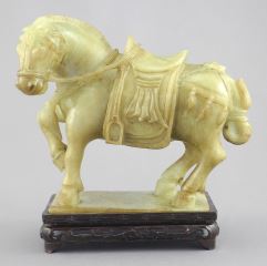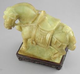 Chinese Softstone Horse Carving (6 3/4 x 7 1/2 x 3 3/8") on Stand.
