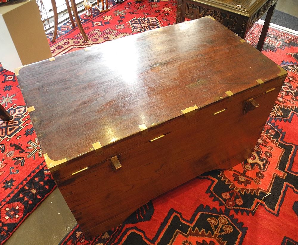 LOT 47 19th C. South Asian Teak Compartmentalized Trunk, 22 1/4 x 35 5/8 x 21 1/2". Estimate: $250 - $350 Auction Date: Tuesday, March 31 2026 at 4:00 PM
