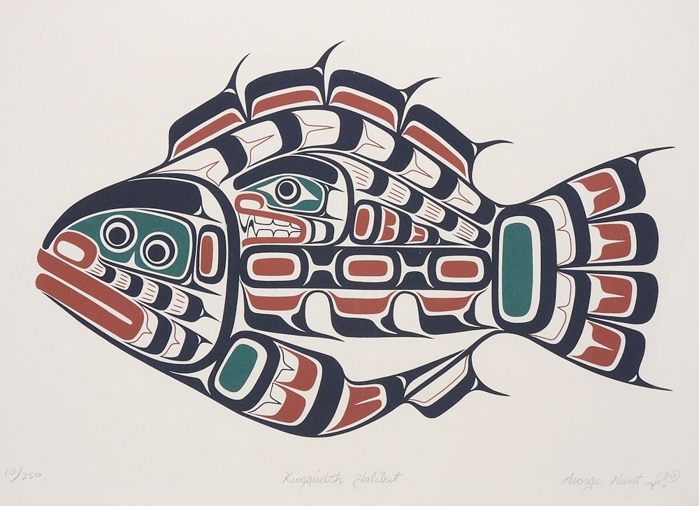 Kwagiulth Serigraph signed George Hunt Jr '80, 16 x 22 1/4" "Kwagiulth Halibut" #10/250.