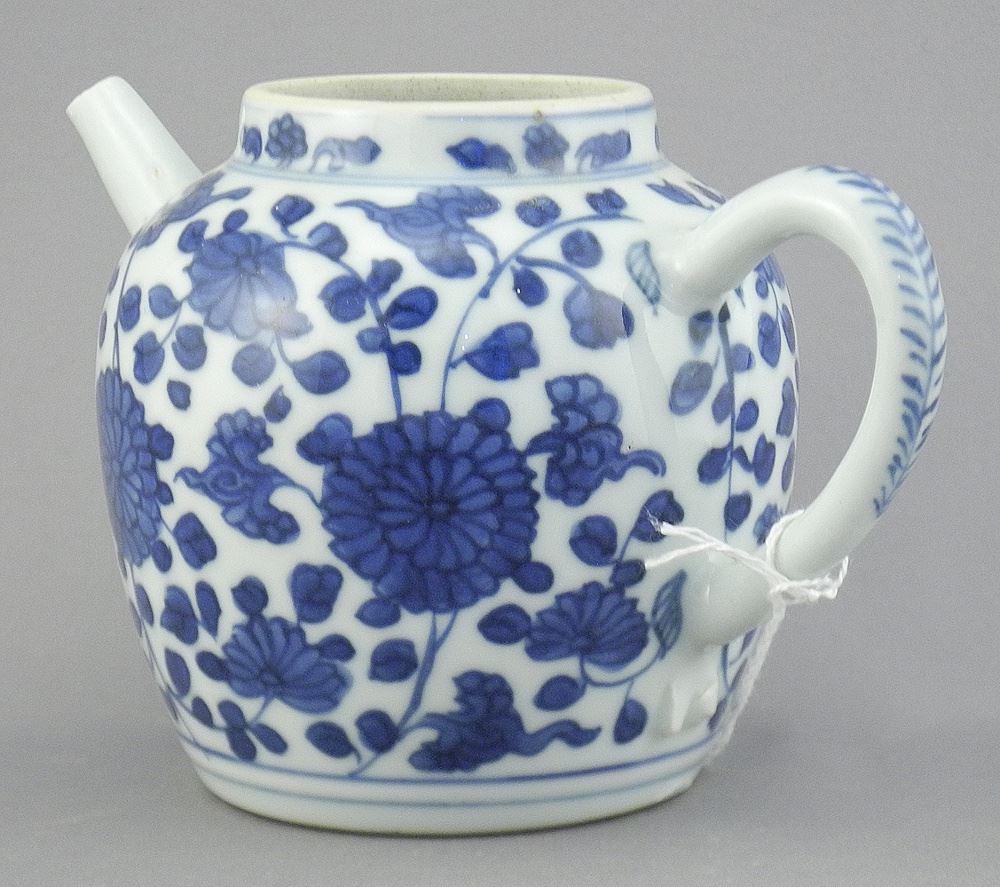 Kangxi Chinese Blue & White Blossom Decorated Teapot, 3 3/4"h.