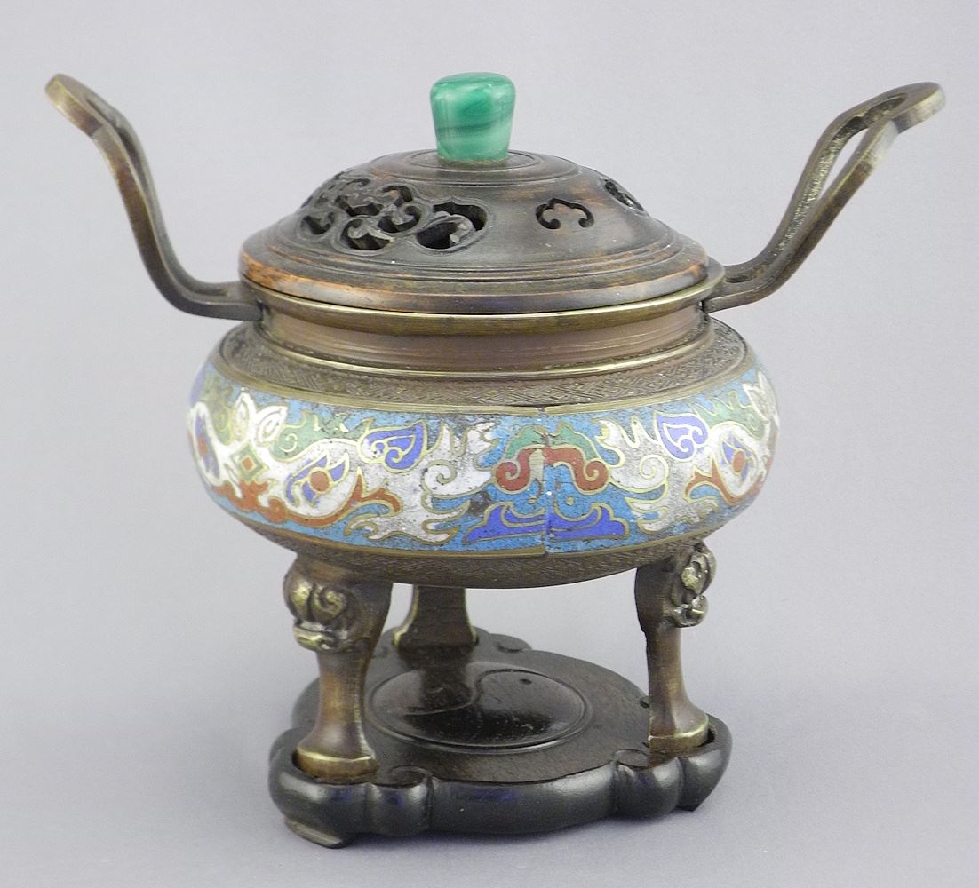 LOT 386 Chinese Champleve Censer with Wood Cover & Stand, 6 3/8"h. Estimate: $150 - $300 Sold For: $375 Auction Date: Tuesday, March 31 2026 at 4:00 PM