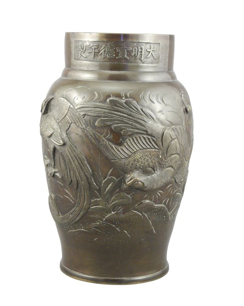 LOT 215 Japanese Bronze Vase with Xuande Mark, 9 1/2"h. Estimate: $80 - $120 Sold For: $50 Auction Date: Tuesday, March 31 2026 at 4:00 PM