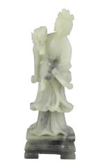 LOT 116 Six Chinese Apple Green Jade Gemstones & Chinese Soapstone Figure , 7 1/8"h. Estimate: $50 - $60 Auction Date: Tuesday, March 31 2026 at 4:00 PM