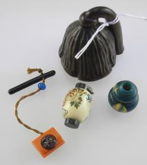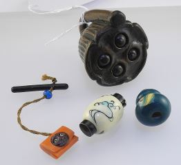 Antique Hand Carved Wood Netsuke & 3 Ojime, 3/8 - 1 1/2"h.