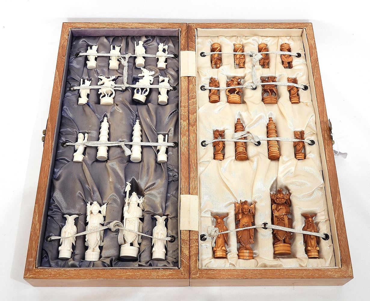 Chinese Carved Chess Set with Case, 16"w, CANADIAN BIDDERS ONLY.