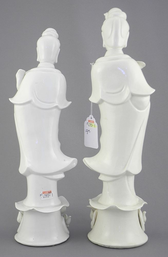 Two Blanc de Chine Porcelain Figures of Guan Yin, 11 3/4 x 13"h.