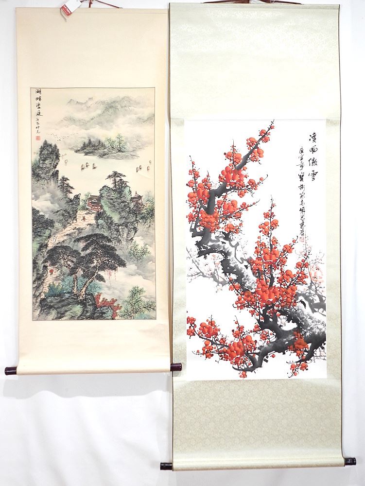 LOT 183 Two Chinese Scroll Paintings, 38 x 20 1/2" & 34 x 18", "Prunus Bough" & "Mountainous...". Estimate: $60 - $100 Sold For: $80 Auction Date: Tuesday, March 31 2026 at 4:00 PM