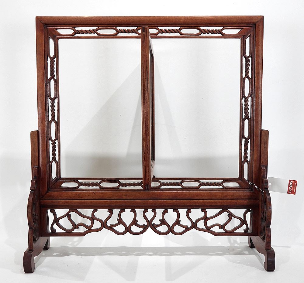 Chinese Rosewood Embroidery Screen.