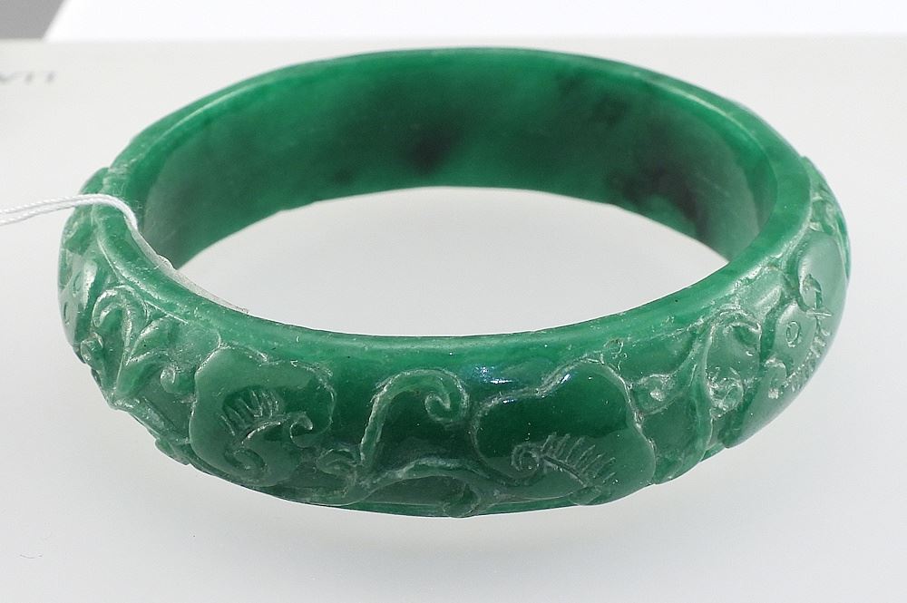 Vintage Hand Carved Chinese Jade Bracelet, 2 7/8" Diameter, 57.1g.