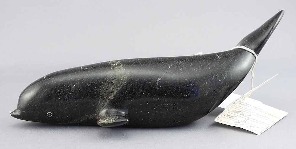 Inuit Stone Carving signed Napatchie Noah, 8 5/8"L "Beluga Whale".
