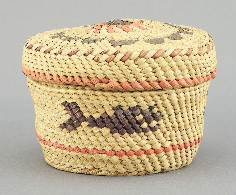 LOT 133 Nuu-Chah-Nulth Trinket Basket, 2 x 3" Diameter. Estimate: $50 - $100 Sold For: $60 Auction Date: Tuesday, March 31 2026 at 4:00 PM