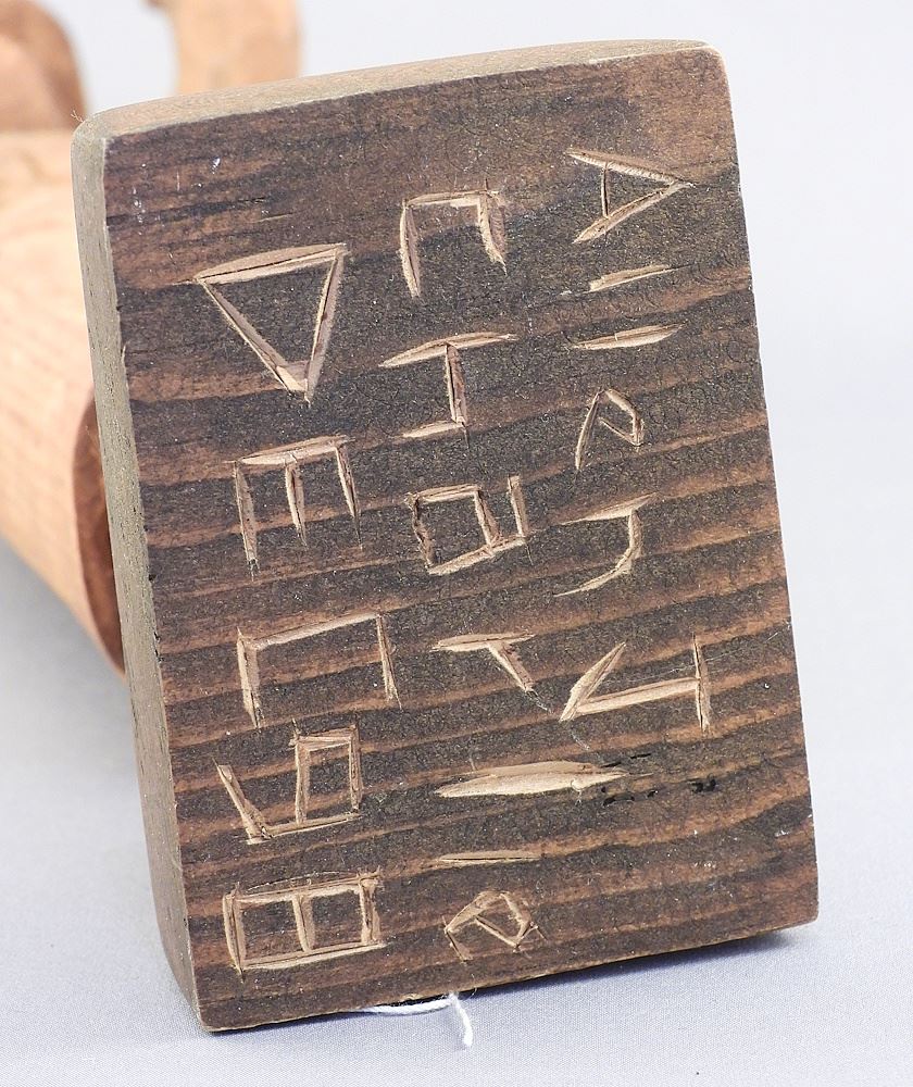 Salish Wood Figure signed Alan J. Charlie Dec '98, 11 3/4"h "Salish Woman Welcoming".