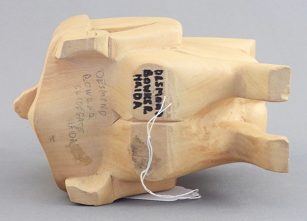 Haida Inlaid Cedar "Human Figure Bowl" signed Desmond Bowker.