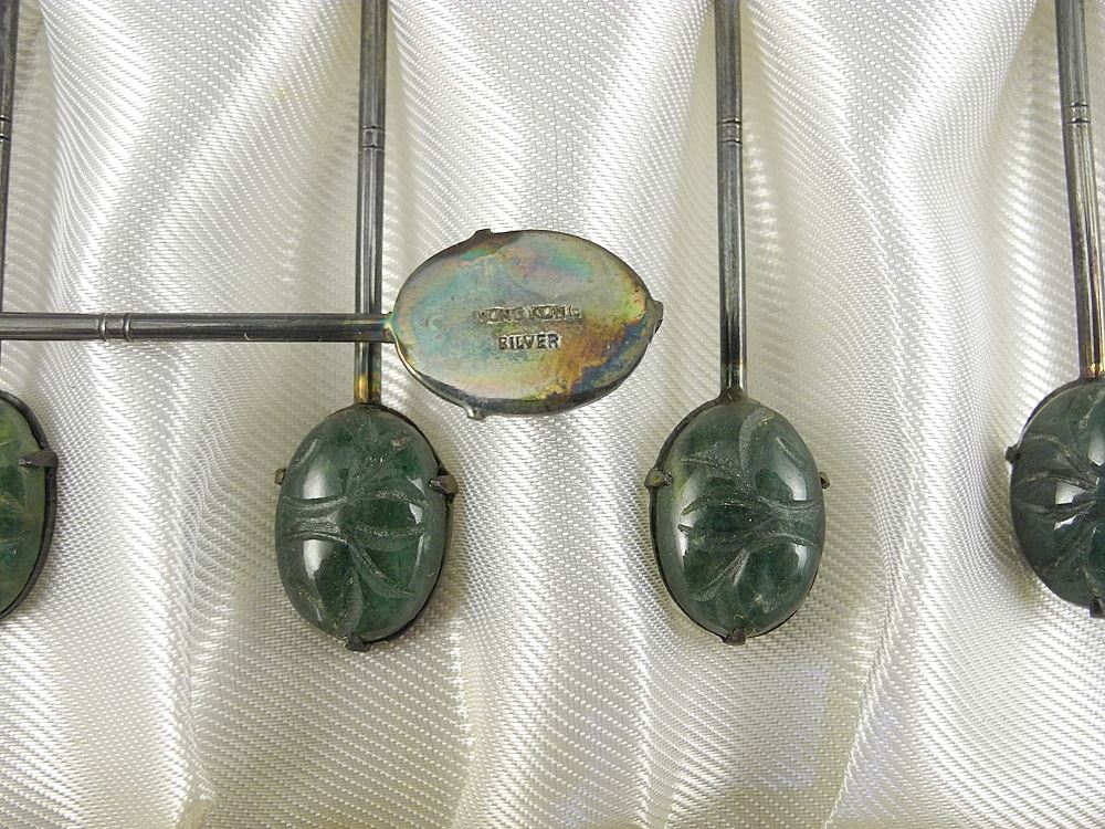 Set of Six "Hong Kong Silver" Jade Terminal Spoons, TW 45g.