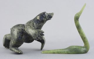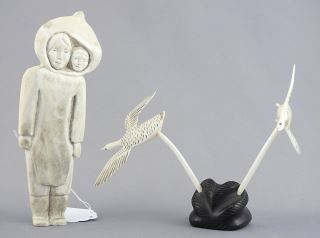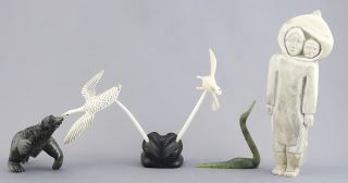 LOT 164 Lot of Small Inuit Carvings: Loon signed N. Ashoona/Bear (ear chipped) Etc. CDN BIDDERS ONLY. Estimate: $60 - $100 Sold For: $160 Auction Date: Tuesday, March 31 2026 at 4:00 PM