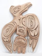 LOT 139 Northwest Coast Style "Raven" Plaque signed Bill Kilby 2025, 27 3/4 x 19" Estimate: $100 - $200 Sold For: $150 Auction Date: Tuesday, March 31 2026 at 4:00 PM