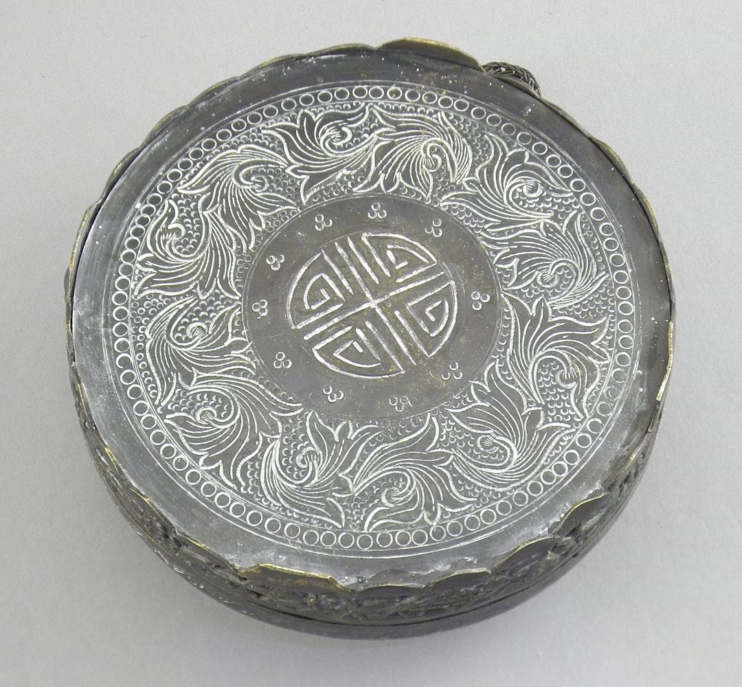 Metal & Bone Feng Shui Compass Acquired Singapore, 4" Diameter.