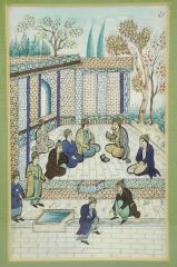 LOT 334 Persian Miniature "Scholars at Madrasa", 5 1/4 x 3 1/4". Estimate: $50 - $60 Sold For: $25 Auction Date: Tuesday, March 31 2026 at 4:00 PM