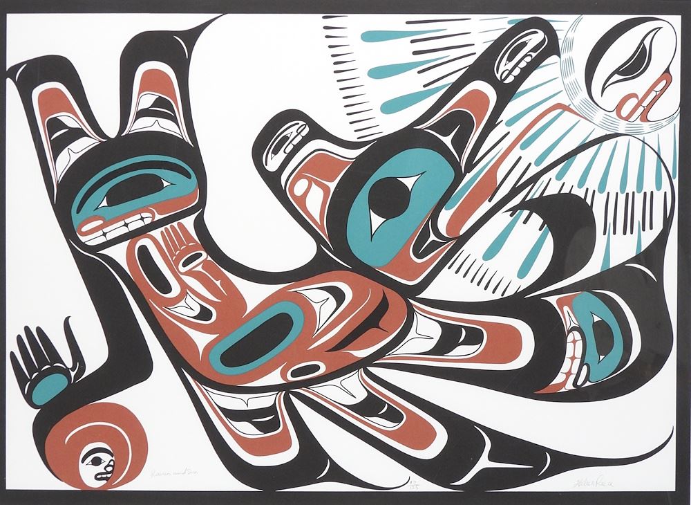 Northwest Coast Serigraph signed Helen Reece, 21 1/4 x 29" "Raven & Sun" #87/125.