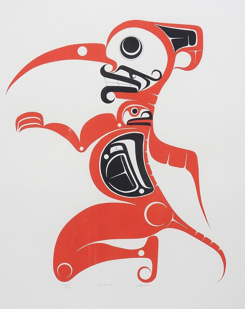 Nuu-Chah-Nulth Serigraph signed A. (Art) Thompson '75, 22 1/4 x 17" "Mosquito" #26/200.