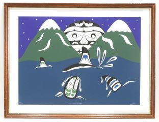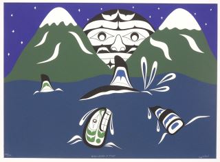 Northwest Coast Serigraph signed William Cook, 15 x 20 3/4" "Killer Whales & Moon" #133/150.