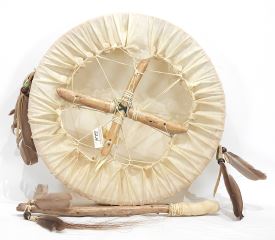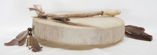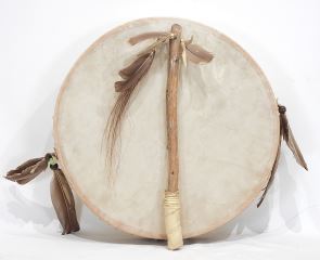 Northwest Coast Hide Drum Monogrammed D. (Dallas Hansen-Chip), 3 x 16 1/2" CDN BIDDERS ON