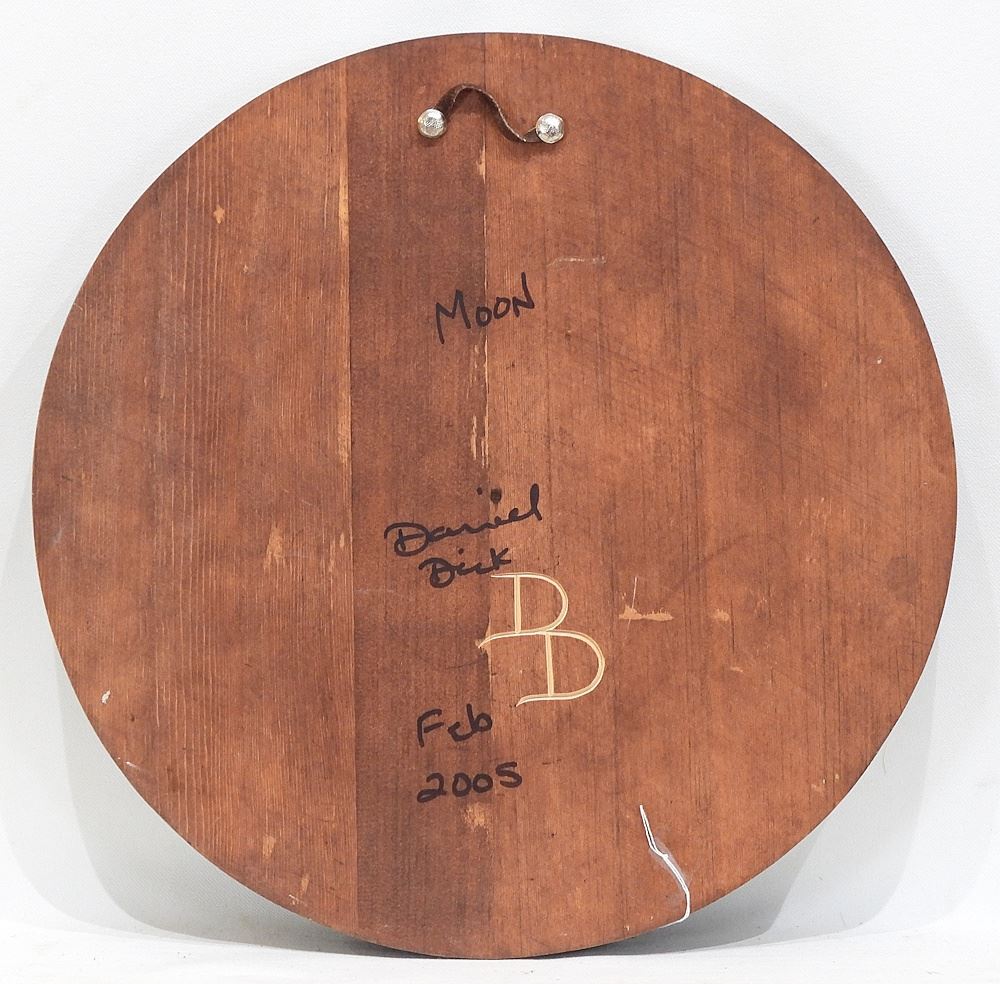 LOT 346 Northwest Coast Plaque signed Daniel Dick, 13 1/2" Diameter, "Moon". Estimate: $60 - $100 Sold For: $110 Auction Date: Tuesday, March 31 2026 at 4:00 PM