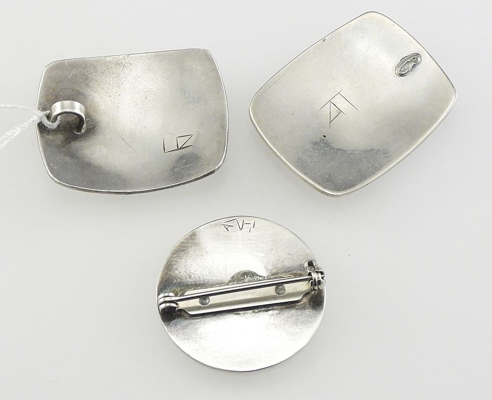 Northwest Coast Silver "Raven" Brooch & 2 Pendants (1 lacking bail) 1" Diam., 1 1/8"h, TW 19g.