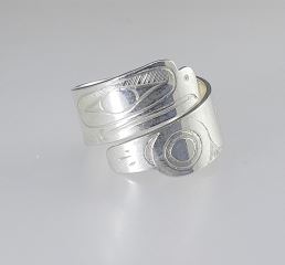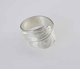 Kwagiulth Silver Spiral Ring Monogrammed EJ, Size 7 1/2, 4.6g.