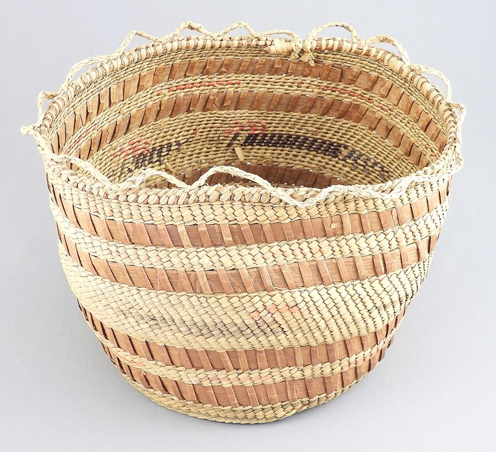 LOT 381 Nuu-Chah-Nulth Basket with Openwork Rim, 5 3/4 x 7 3/4" C.1931's. Estimate: $100 - $200 Sold For: $140 Auction Date: Tuesday, March 31 2026 at 4:00 PM
