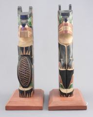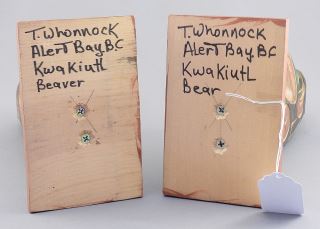 LOT 108 Two Kwagiulth "Bear" & "Beaver" Poles signed Tom Whannock Alert Bay BC. Estimate: $200 - $300 Sold For: $190 Auction Date: Tuesday, March 31 2026 at 4:00 PM