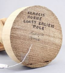 LOT 50 "Coast Salish Pole" signed Francis Horne, 15 7/8"h. Estimate: $150 - $200 Sold For: $180 Auction Date: Tuesday, March 31 2026 at 4:00 PM