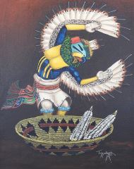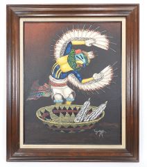LOT 224 Oil on Canvas signed Jimmy Yellowhair, 30 x 24" "Dancing Kachina" '77. Estimate: $100 - $200 Auction Date: Tuesday, March 31 2026 at 4:00 PM