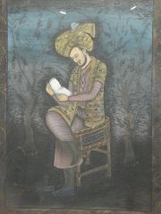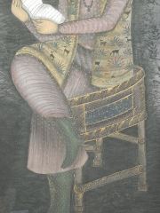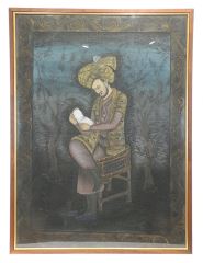 C.1860 Mixed Media on Silk "Babar The First Mughal King", 44 1/4 x 32 1/2".