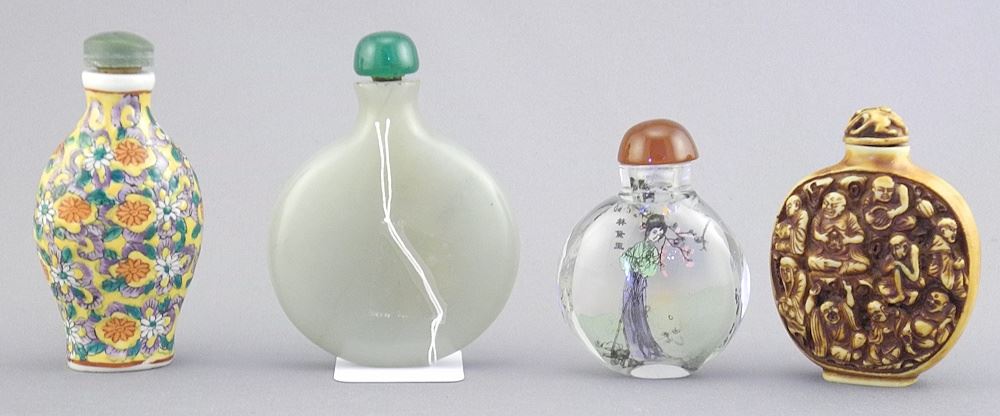 Flask Shaped Calligraphic Snuff Bottle (3 1/8"h) with Porcelain/ Reverse Painted/Synthetic.