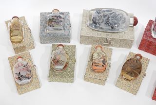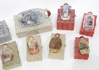 LOT 312 Collection of 10 Chinese Reverse Painted Glass Snuff Bottles, 3 1/2 - 6 1/2"h. Estimate: $150 - $200 Auction Date: Tuesday, March 31 2026 at 4:00 PM
