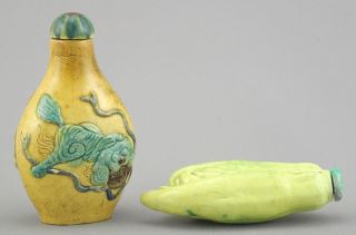 Two Chinese Porcelain Snuff Bottles, Fahua Style & Finger Citron, 2 7/8"h