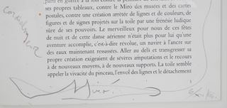 Drawing on print signed Miro, 15" x 11", "Les Peintures Sur Carton de Miro".