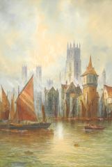 LOT 52 Watercolour signed J.E. Jamison, 20" x 13 1/2", "European River Scene". Estimate: $100 - $150 Auction Date: Tuesday, March 30 2021 at 6:00 PM