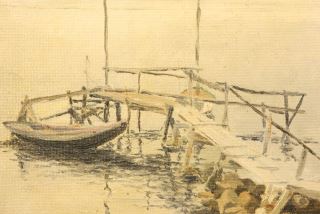 LOT 108 Oil on Board Signed (Yngve) Svalander '46, 14 1/2" x 12 1/2", "Dinghy at Jetty". Estimate: $100 - $200 Sold For: $100 Auction Date: Tuesday, March 30 2021 at 6:00 PM