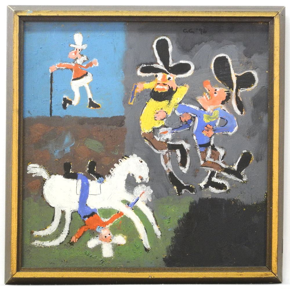 Oil on Board Monogrammed GG (George Gordienko)'96, 11 1/2" x 11 1/2", "Good Guys Always Win".