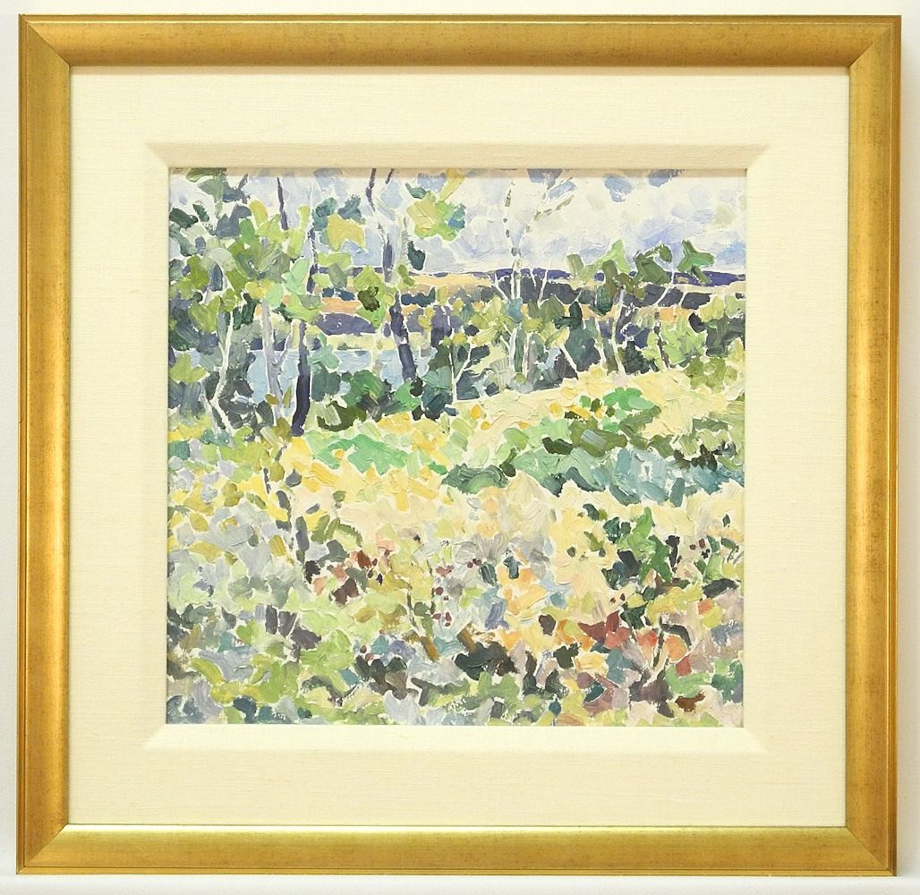 LOT 51 Oil on Board signed L. (Lorna) Russell, 10 1/2" x 10 3/4", "Wild Roses Near Dogwood Lake". Estimate: $200 - $400 Sold For: $190 Auction Date: Tuesday, May 07 2024 at 4:00 PM