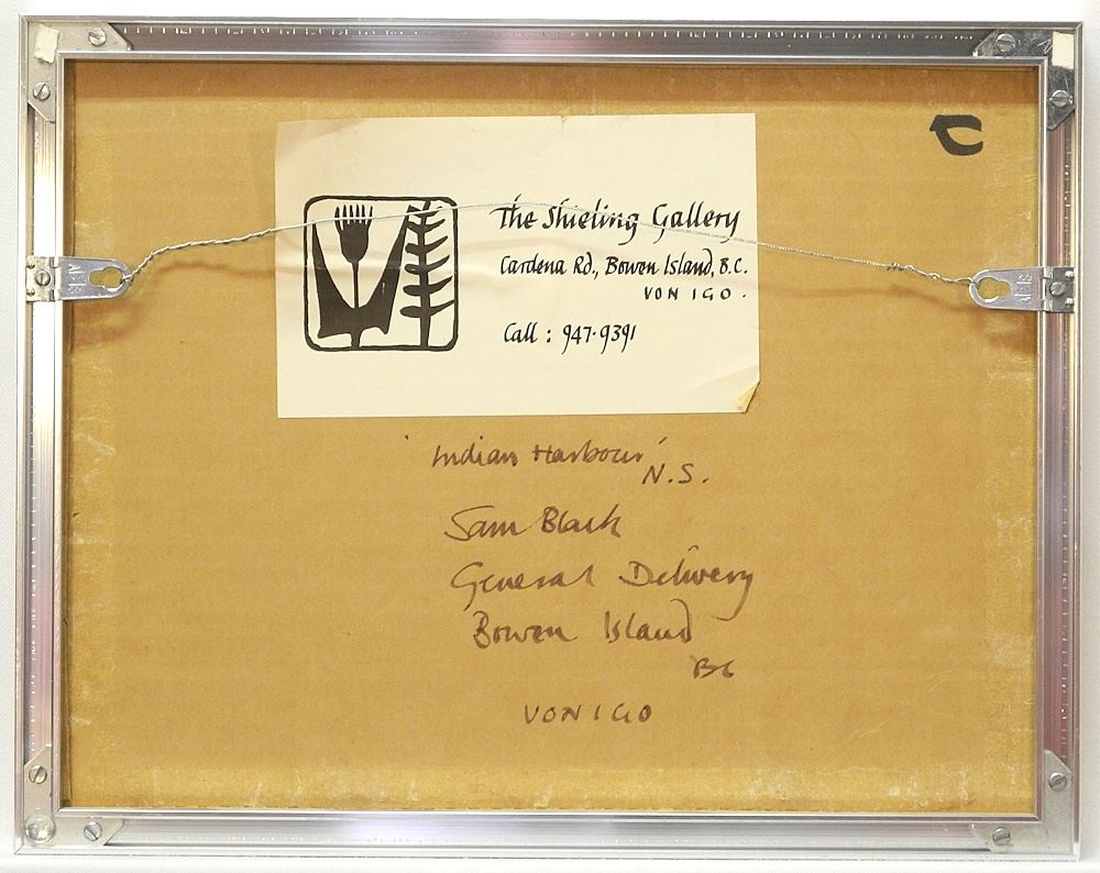 LOT 42 Watercolour signed Sam Black, 5 7/8" x 9", "Indian Harbour, N.S". Estimate: $100 - $200 Sold For: $200 Auction Date: Tuesday, May 07 2024 at 4:00 PM