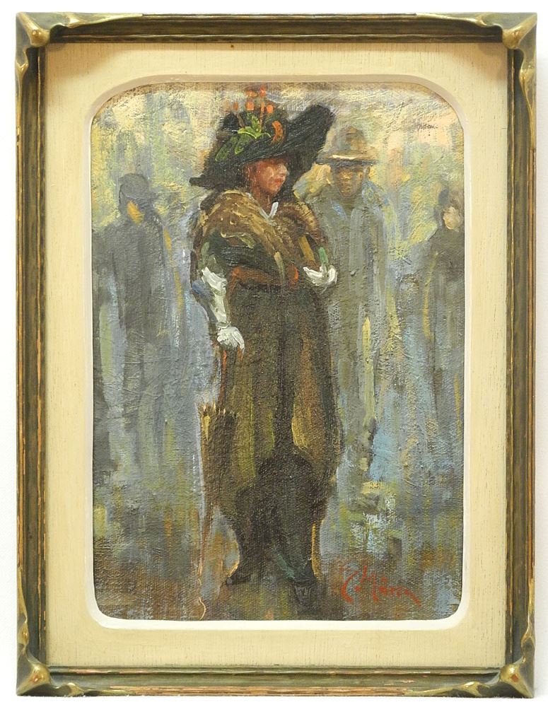 LOT 93 Oil on Canvas Mounted on Board signed E. (Ernest) Marza, 10 1/4" x 7", "Woman in Fancy Hat". Estimate: $100 - $150 Sold For: $600 Auction Date: Tuesday, May 07 2024 at 4:00 PM