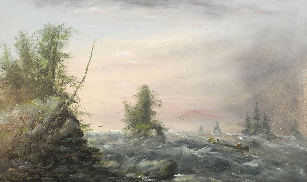 Pair of Oil on Board, 16" x 26", "Falls of the Ottawa at Les Chats" & "Lake Scene".