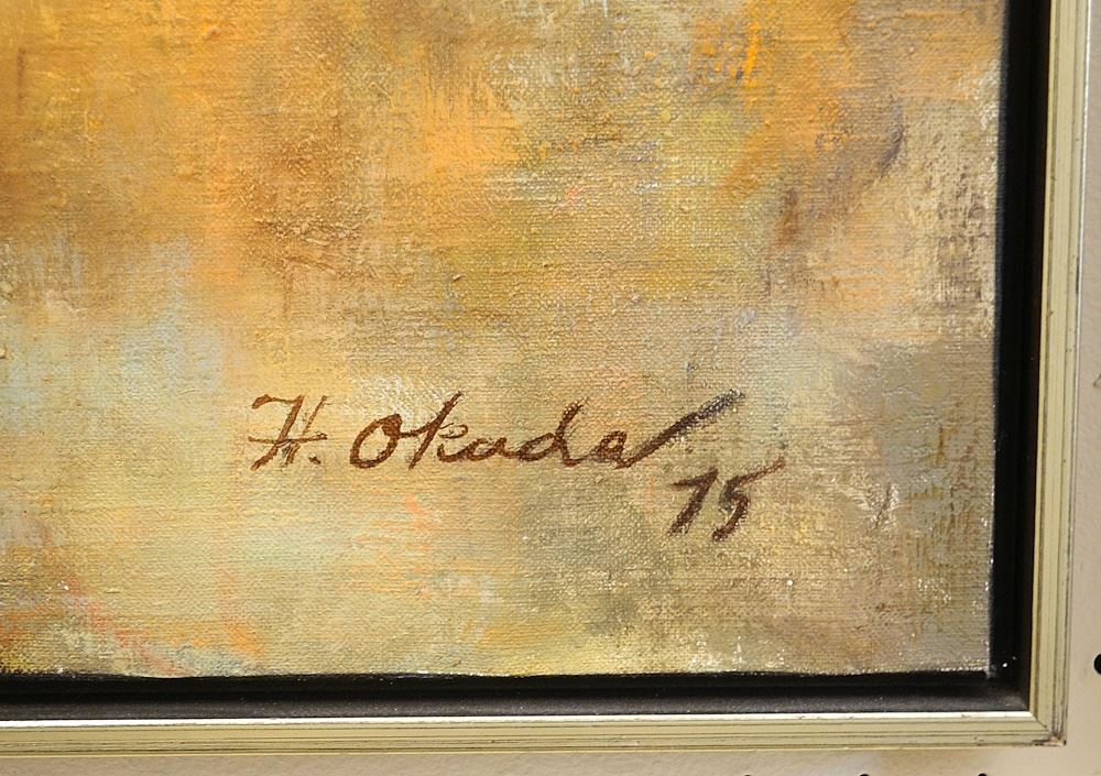 LOT 34 Oil on Canvas signed H. (Hajime) Okuda'75, 30" x 23 3/4", "Untitled Composition". Estimate: $150 - $500 Auction Date: Tuesday, July 23 2024 at 4:00 PM