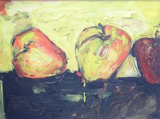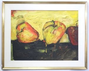 Oil on Canvas signed VM (Vicky Marshall), 18" x 24", "Three Apples"
