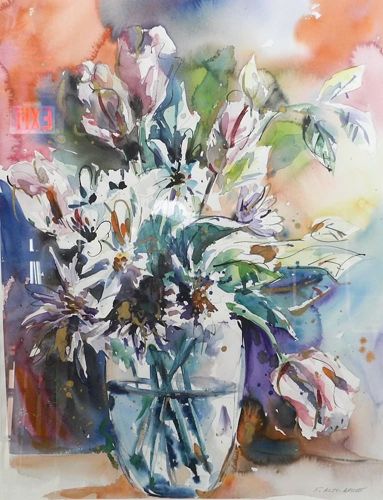 Mixed Media Watercolour signed F. Alty-Arscott, 28 1/2" x 21", Untitled Floral Still Life