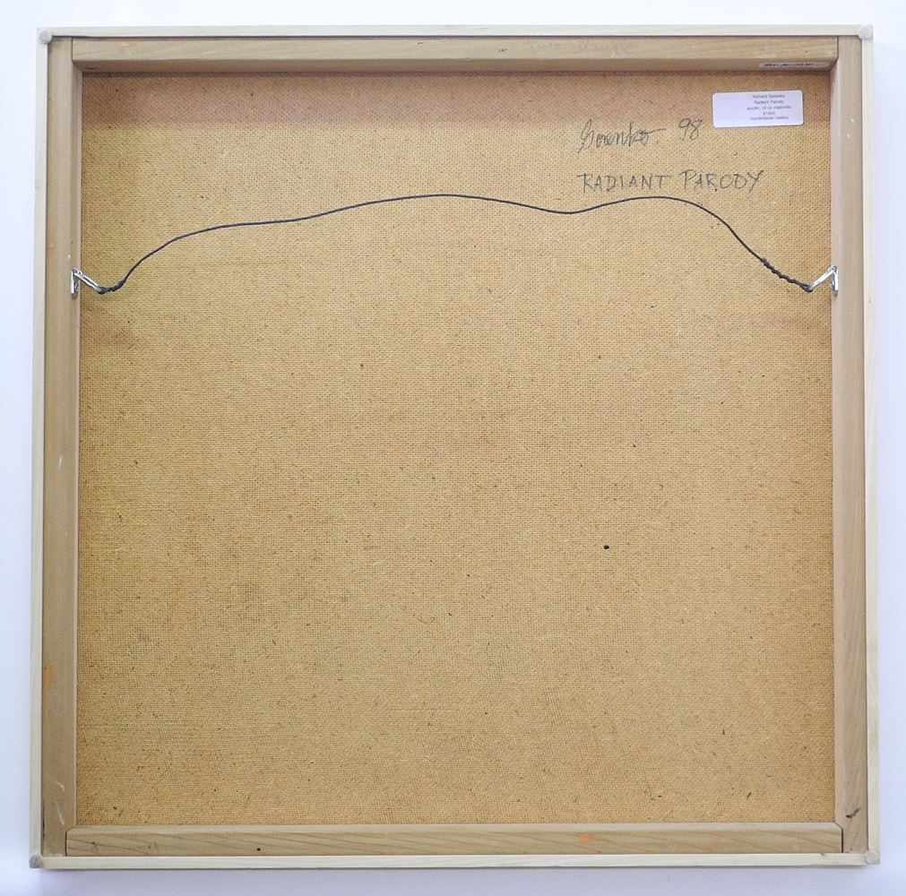LOT 84 Acrylic & Oil on Masonite signed Verso (Richard) Gorenko, 22" x 22", "Radiant Parody". Estimate: $160 - $200 Sold For: $225 Auction Date: Tuesday, July 23 2024 at 4:00 PM